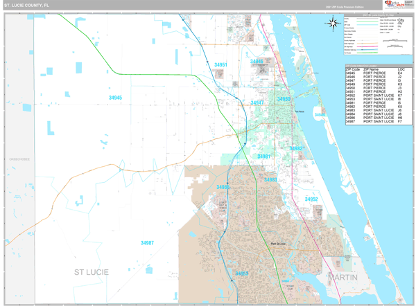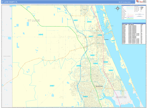 Okeechobee County Florida Zip Code Boundary Map (FL) St. Lucie County, FL Zip Code Wall Map Premium Style by MarketMAPS.