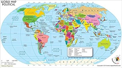 World Maps | Maps of all countries, cities and regions of The World Amazon.: World Map in Robinson Projection (36" W x 19.9" H .