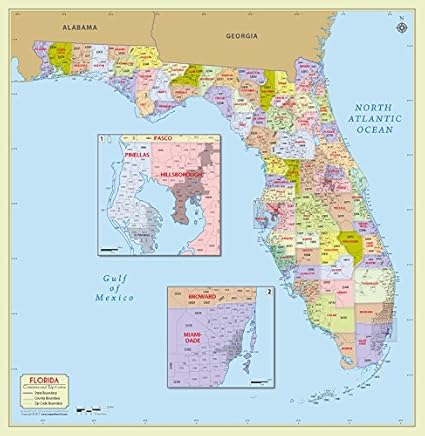 Amazon.: Florida County with Zip Code Map (36" W x 37" H Buy South Florida Zip Codes Map.