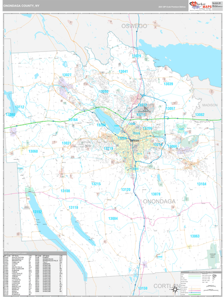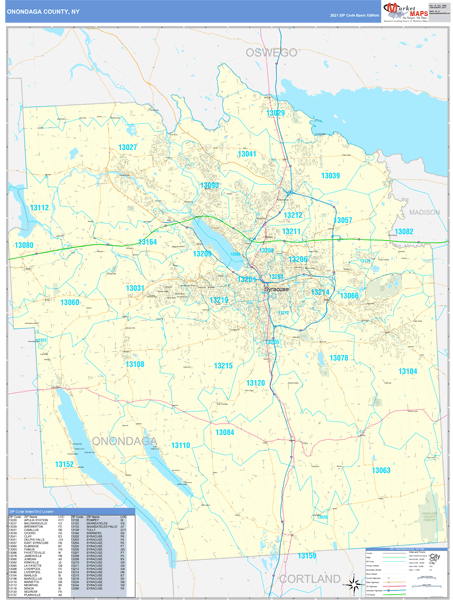 Onondaga County, NY Zip Code Wall Map Red Line Style by MarketMAPS Onondaga County, NY Zip Code Wall Map Basic Style by MarketMAPS.