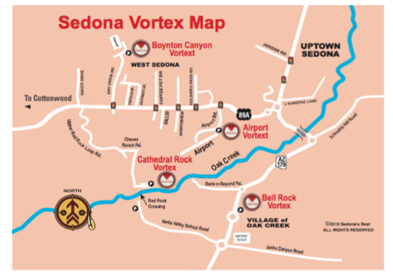 Sedona Vortex Map | The Call of Sedona | Where To Find An Energy Vortexes · Red Rock Scenic Byway.