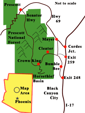 Directions to Crown King Map of Crown King, AZ, Arizona.